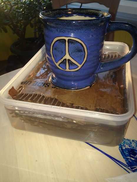 Después de su cartulina en el agua, coloque un peso limpio, como una taza de café, sobre cartulina para mantenerlo sumergido en el agua.