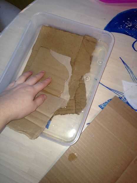 Remojar de cartón por unas horas o hasta que se empapa a través de todo el camino.
