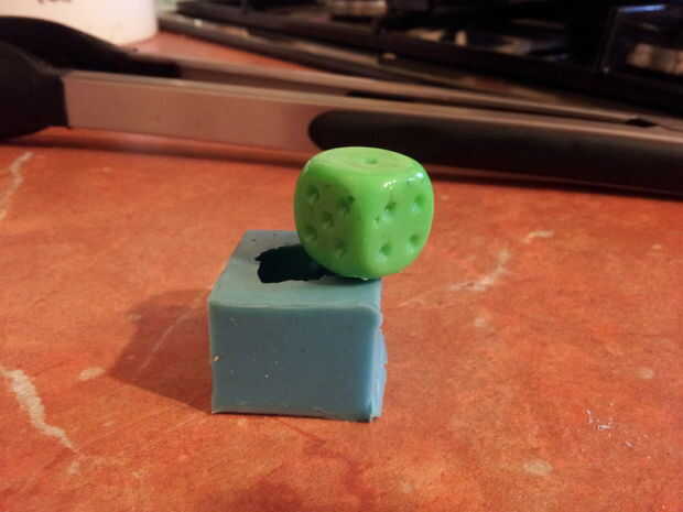 Facilidad a un lado la silicona en la parte superior y empuje desde abajo con un dedo. Su die debe simplemente estallar hacia fuera con un poco de aliento!