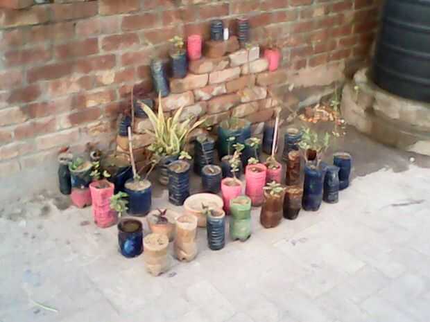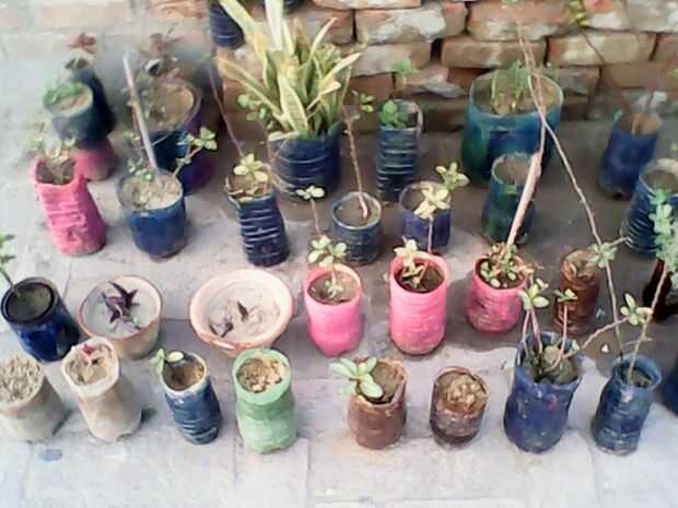 He utilizado las cosas viejas de la basura para mi jardín como botellas plásticas, periódicos