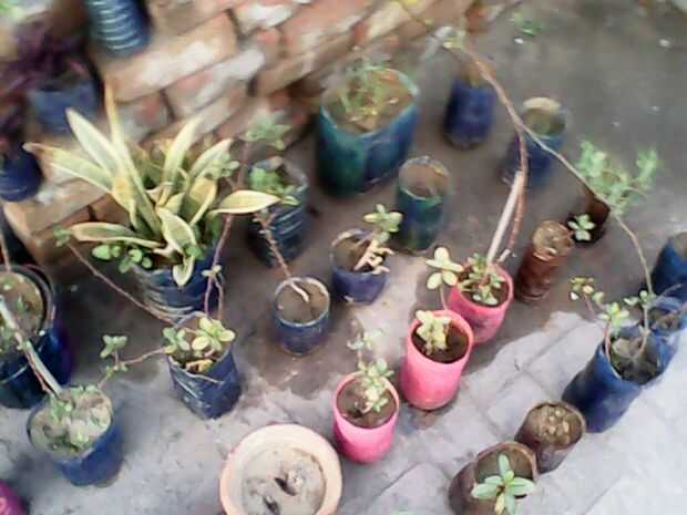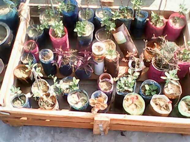 I made small garden at house. Tengo planta de verduras, la cúrcuma y muchas flores. Su maravilloso conocimiento sobre reciclaje, reutilización de los residuos.