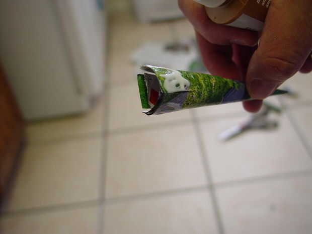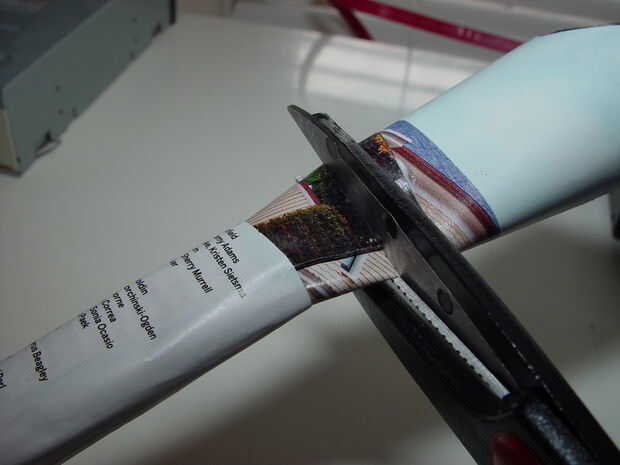 4. pegar el cono en el tubo del cohete, punta de primera (!), para ver cuánto del cono que necesita. Luego cortar el cono para que 3/4" de la misma pega del tubo.