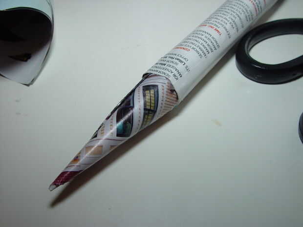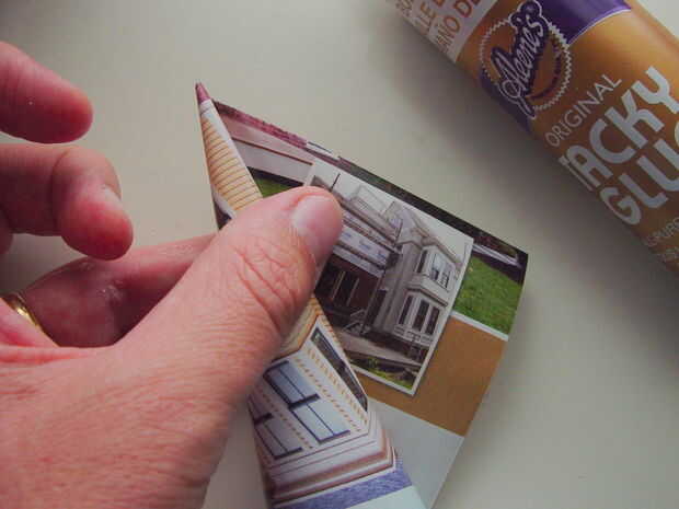 3. al llegar bastante cerca del final, poner pegamento en el papel que está rodando sobre el cono. Asegúrese de que la punta es hermética, poner un pegote de pegamento como sea necesario.