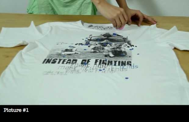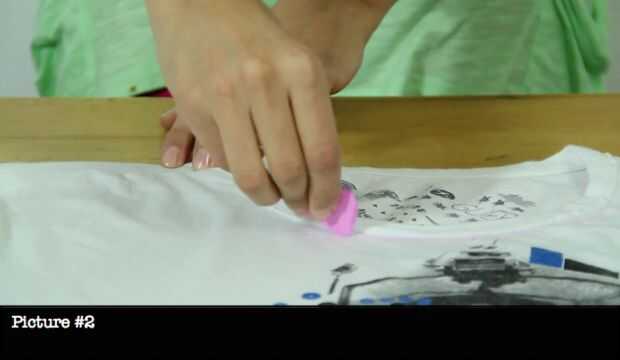 #1 y #2 del cuadro de la imagen: Marque primero la línea del cuello de la camiseta.