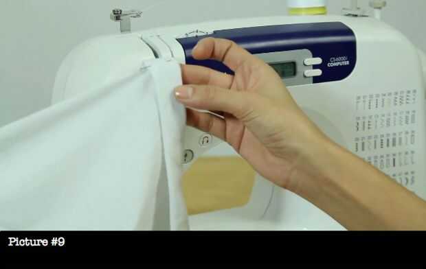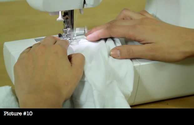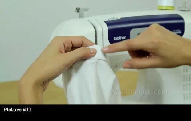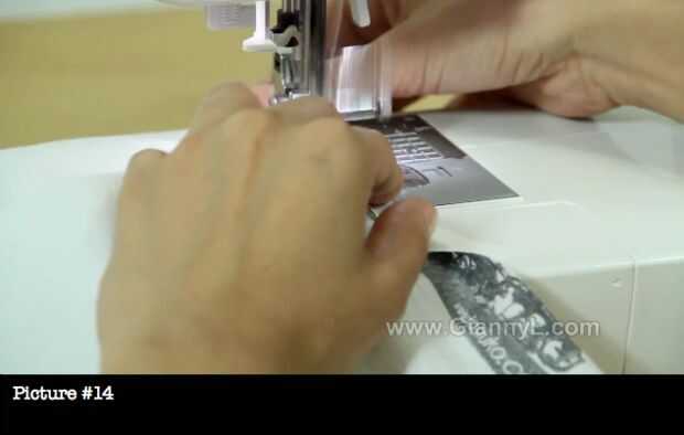 #12 y #13 del cuadro de la imagen: Ahora hacer un dobladillo en la parte inferior, luego coser elegir la puntada de zig zag.