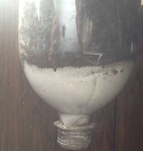 Si usted quería crecer revés Tomate, pimiento u otros vegetales. Primero empuje con cuidado en las hojas a través del cuello de la botella, cuando haya terminado simplemente suciedad del relleno hacia arriba. Deje abierta la parte superior (era fondo de botella, ahora es top) (material de algodón no es necesario para este tipo)
