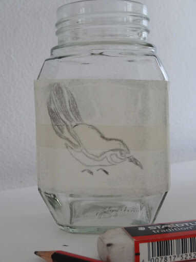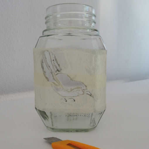 Envolver el frasco con cinta adhesiva para facilitar su elección de diseño sobre la superficie de transferencia.