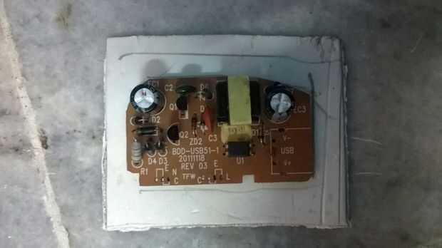 esto es una vieja luz de tubo fluorescente defectuoso que convierte en utilizar tecnología LED.La luz del tubo viejo había soplado los capacitores e inductores y había sido reparada antes de finalmente abandonar el fantasma. La salida de luz era pobr