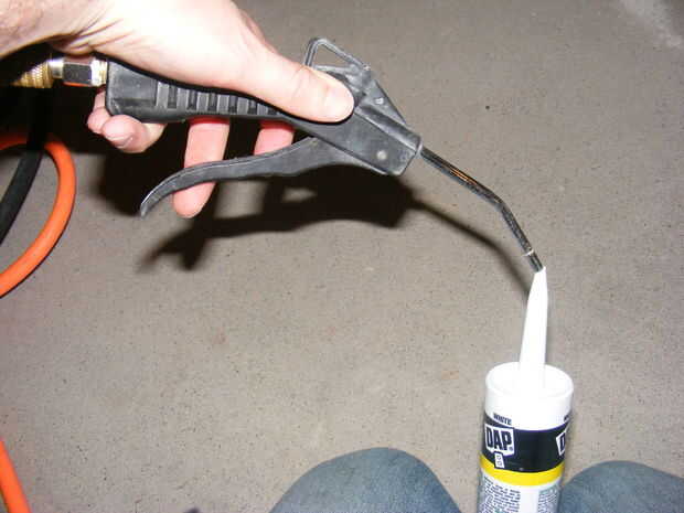 Usted puede extraer el émbolo de la masilla con un poco de aire comprimido. En primer, lugar el fondo del tubo de calafateo en alguna parte que no te importa metiendo algunas calafateo, tales como una bolsa de basura. O podría poner un trapo el extremo posterior del tubo. Después de Presione la boquilla de aire de un compresor de aire firmemente contra la abertura en la punta del tubo de calafateo. Una ráfaga de aire debe lanzar el émbolo de la parte posterior del tubo. Mantener el émbolo para su reutilización.