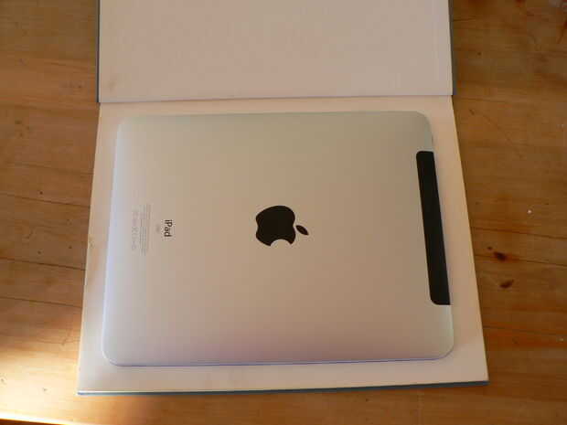 Lleve su iPad a una tienda de tienda o de segunda mano de segunda mano libro y encontrar un libro que es del tamaño adecuado. Me pareció el tamaño cuando configuras el iPad en las páginas del libro, hay unos 20mm (3/4") a 25mm (1") alrededor de él. Demasiado pequeño es un problema porque el papel no será lo suficientemente fuerte para sostener el iPad en y demasiado grande, está bien, si te gusta llevar mucho de tamaño y peso que no es necesario. El grosor ideal es cuando las páginas del libro cerrado son iguales o ligeramente más gruesa que el iPad. También elegí un libro con un montón de fotos ya que las páginas eran más gruesas que significó más fuerte y menos para cortar.