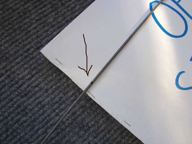 Coloque el marco del alambre en la parte superior la señal (dando el marco sobre 1/2 separación de los bordes) y use un marcador para marcar el lugar de que la pierna nueva tiene que ser doblado.
