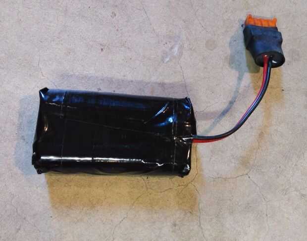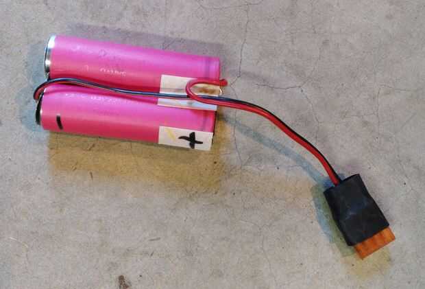 Para este sistema de iluminación de la bicicleta, estoy usando uno de los pares de 18650 células. Simplemente he añadido un conector (Nota: el conector utiliza es un conector de bicho raro que me dieron en una tienda de excedentes porque estaban baratos.) y luego el par de células con cinta aislante y cinta aislante. No es bonito, pero sería adecuado para mis necesidades.