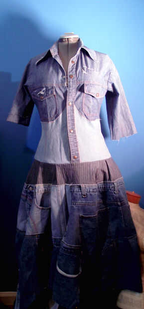 Cuando hice esto me cubrió y cosido como fui. Realmente no planeo, que funcionó bien para mí ya que estaba dejando todo el show de bordes. Si usted no dejar que el crudo muestran bordes, entonces me aconsejo cosiendo cada fila juntos en círculo grande con las costuras en el interior y luego la cosa en el. Una vez que cose cada fila en la también le aconsejo recortar para que sea la misma longitud alrededor de todo el camino. Si usas pantalones vaqueros que son todos el mismo tamaño entonces esto probablemente no será mucho problema, pero tuve un rnage amplia amplia de tamaños.