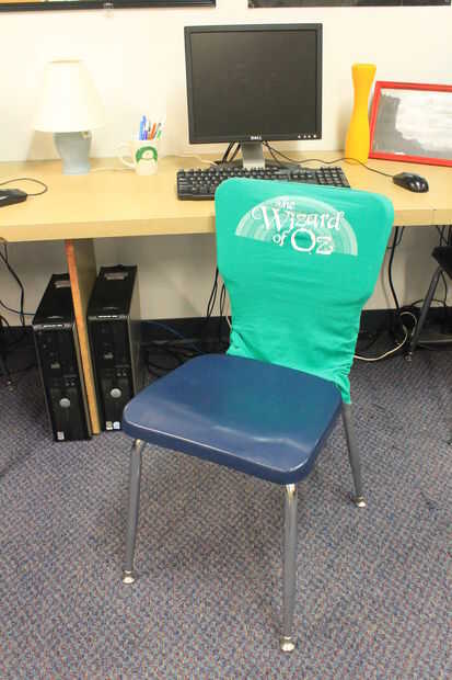 Reciclar viejas camisetas en cubiertas de asiento de aula