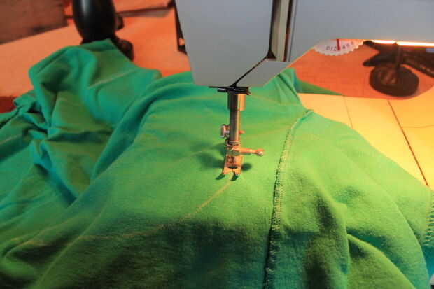 La costura se realiza, una vez la camiseta del lado derecho hacia fuera. Aproximadamente debería parecerse a la forma de la parte posterior de la silla.