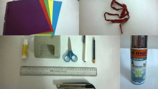 Tela de la opción - Pegamento. Tijera. Herramienta de corte. Punción. Regla. Lápiz
