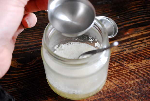 Añadir 3 cucharadas de agua hirviendo y mezclar bien.