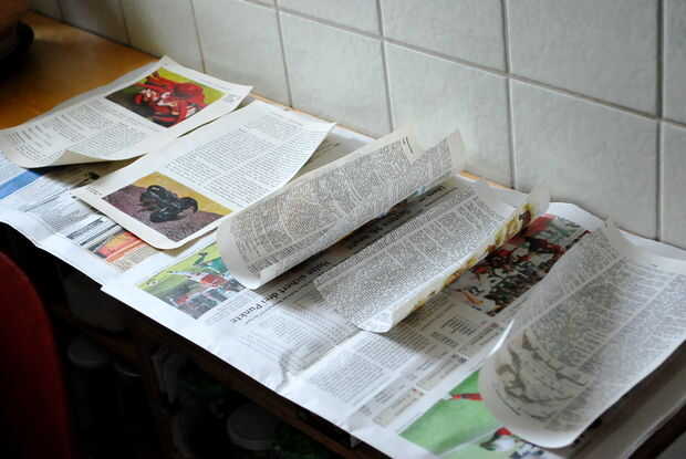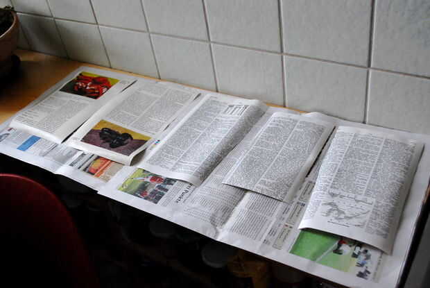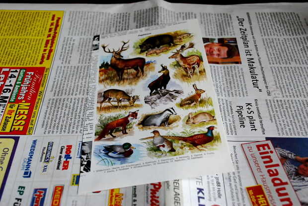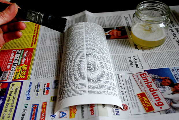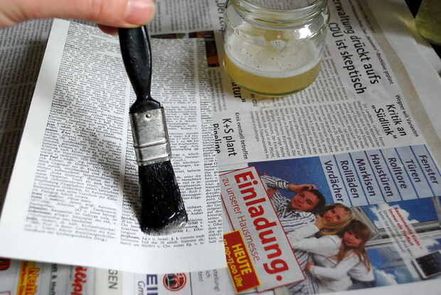 Cubrir el espacio de trabajo con periódicos viejos y aplique el pegamento en la parte posterior.
