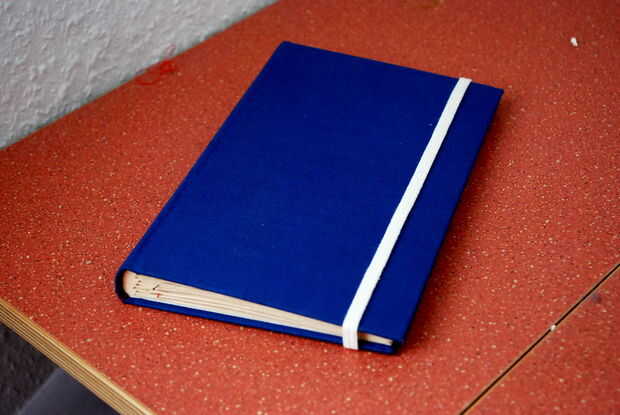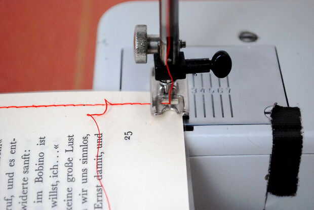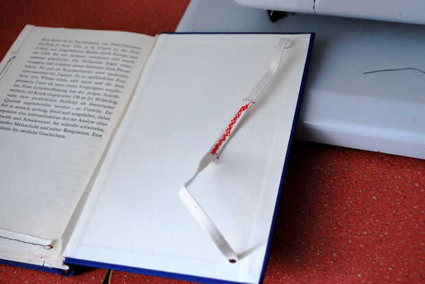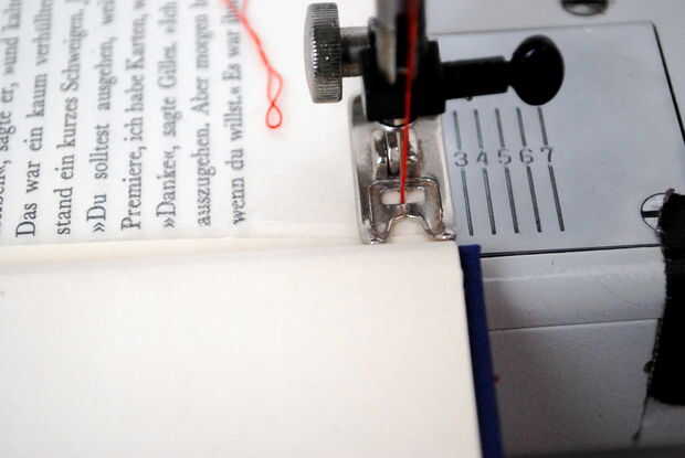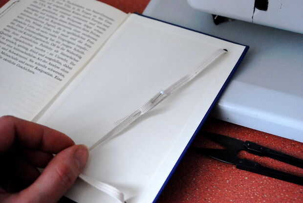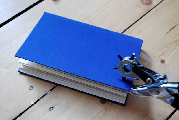 Si te gusta puede Agregar un cierre fácil a tu álbum por perforar dos agujeros en la cubierta posterior del libro, enhebrar una cinta de goma a través de los orificios y conectar los extremos con y zig-zag de la puntada.