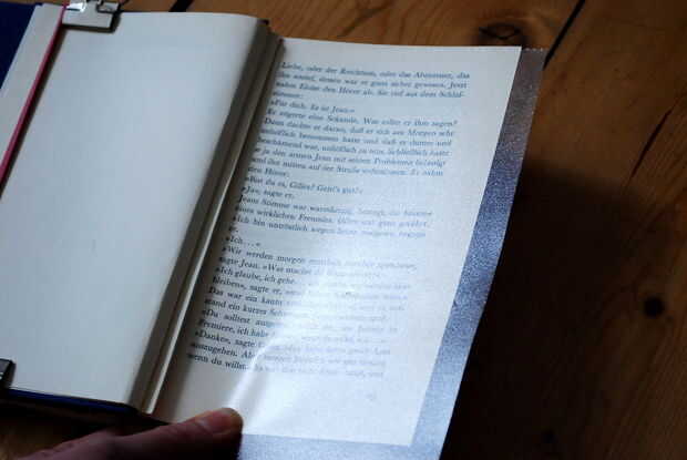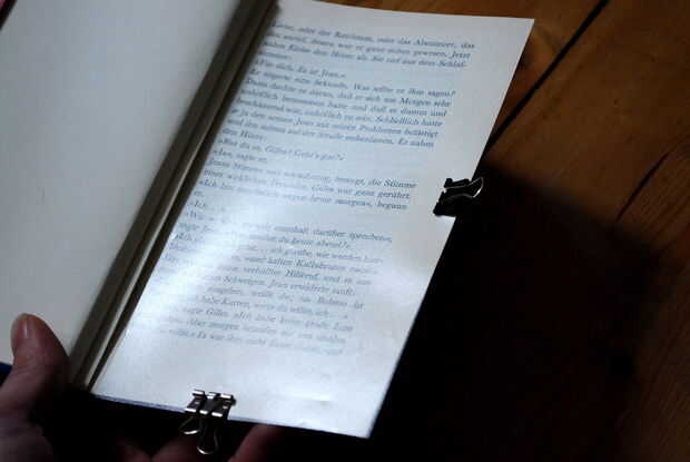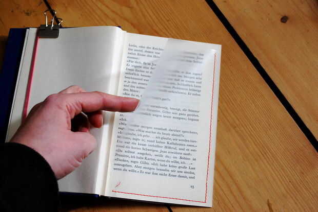 Coloque el plástico encima de las 3 páginas y asegúrelo con algunos clips de carpeta.
