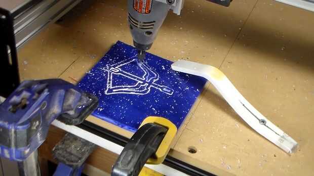 Para mí, acabé cortando un logotipo de Hawkeye en la CNC. Era el púrpura solamente revestido súper héroe que vino a la mente, excepto tal vez los Hulks bajo-roos...