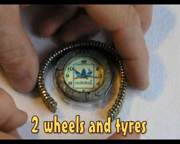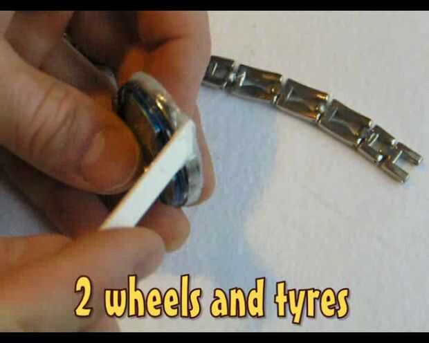 Hacer ruedas de relojes viejos y neumáticos de las pulseras