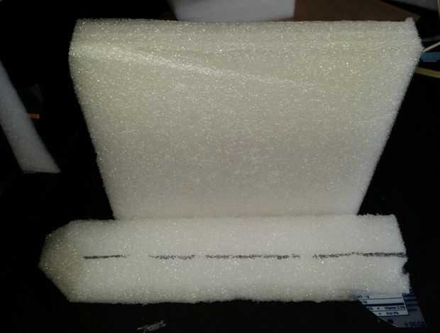 Marque la línea central, utilizó una sección triangular de espuma y pegados por el centro para añadir un poco más grueso donde se apoyan los mástiles.