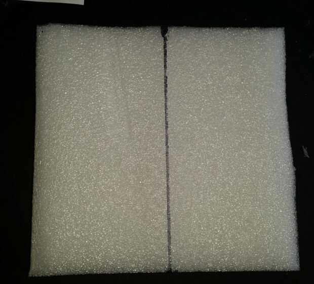 Utilice un back de un bloc de notas u otra pieza de cartón como guía para cortar la Plaza cubierta (éste es cerca de 8 "x 8" x 1 1/4" espesor)