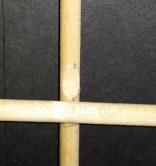 Coloque los tacos donde se vaya, ver foto y tallar una pequeña muesca donde se cruzan los palos, éstos se engancharán cuando pegamento arriba, mantener resbale y añadir una pequeña fuerza.