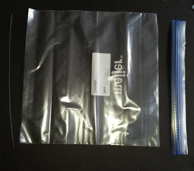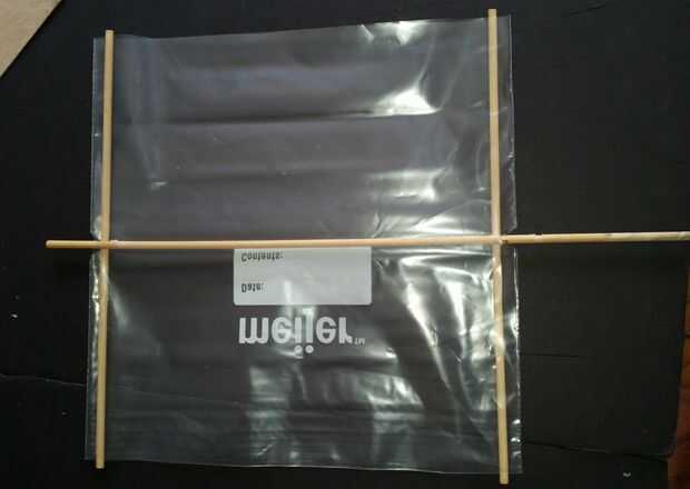 Cortar la parte superior y parte inferior de una bolsa zip-lock de congelador (1 Gal) gírelo 90 grados por lo que los lados son ahora la parte superior e inferior de la vela. doblar el bolso por la mitad para cortar una muesca pequeña en la parte superior e inferior donde el mástil se puede ir a través.