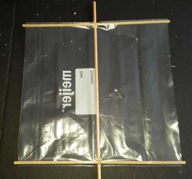 Cortar los 1/4 tacos, 2 longitudes un poco más anchos que la vela y uno (el mástil) 4-6" más alto que la vela,