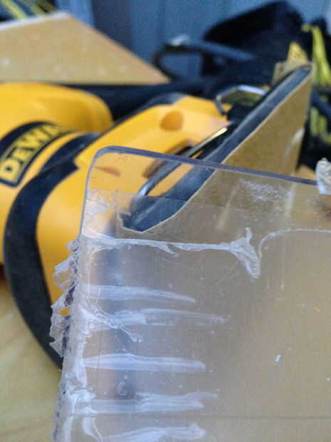 1. Use una pieza extra y rip para el tamaño en la Sierra de mesa o utilizar la fresadora en una esquina del escritorio para hacer perfecto.