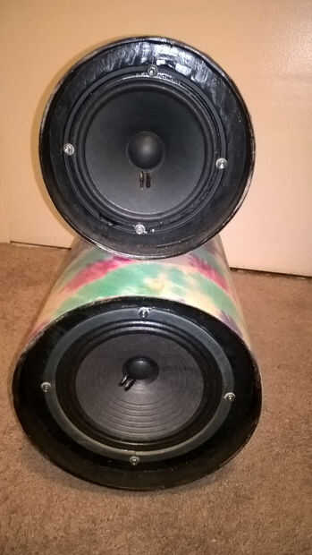 Empecé con el paso más sucio--glassing los tubos. Medido de uno de los extremos la longitud requerida (determinada por el volumen requerido), añadir unos 2" para tener en cuenta el espesor de las tapas y el volumen por el cono sí mismo. Marca alrededor del tubo de cada par de pulgadas. Dejé la longitud completa del tubo en este punto. Para hacer más fácil el glassing, inserta un 2 x 4 a través del tubo y levantó ambos extremos en sillas. Esto le permite rotar el tubo mientras se trabaja, sin el tubo de tocar el suelo. Trabajé mezclando algunos resina (el más lenta puede encontrar--, si recuerdo bien, se trataba de 30 minutos). Vertería algunos en la parte superior (en cartulina), el poner el paño sobre la resina y con una escobilla de goma, que trabajaría las burbujas y holgura. Tienes suficiente resina si el vidrio es básicamente claro. Quiero buscar "mojado" pero están tratando de evitar goteos. Por rotación el tubo, aplicar vidrio y squeegeeing hacia fuera el exceso, puede hacer un muy buen trabajo. Como mencioné, usaba oeste sistema de epoxy (las cosas que se utilizan en barcos y aviones), pero regular poliéster resina estaría bien. Olor y no se debe utilizar en interiores. Deje que la resina endurezca por un par de días si es posible. En teoría, 24 horas debería ser suficiente, pero realmente toma un poco de tiempo para llegar a toda la fuerza y la gomosidad se ha ido. Si no está completamente endurecido, será gunking encima de papel de lija y haciendo un lío. Después de curado para un par de días, corte los tubos con una sierra de mano. Envuelve los tubos en cinta adhesiva, siguiendo las huellas que fueron colocadas en el tubo antes de glassing. es un poco tedioso, pero con cuidado fui con la sierra, solo corte a través del vidrio, entonces cortando completamente el cartón. El frente puede limpiarse usando un bloque de lijado y lijado a través del cristal hasta llegar a la cartulina. Con este método, los tapones delanteros van en último. Para asegurarse de que no caigan en el tubo, y para asegurar un ajuste sólido para el frente, algunas paradas se instalaron en los tubos de 1.5" detrás de la abertura. éstos fueron hechos por el corte 1" rebanada de la los Sonotubes y retirar aproximadamente 1/4" de él (por lo que el segmento puede caber dentro del tubo). Estos se pegan con epoxi, con abrazaderas de resorte para asegurarlos. Si un puerto debe ser instalado, ahora es el momento de cortar el agujero para él. El puerto puede instalarse con más vidrio y resina. Mina cristal desde el interior, lijar la escalera exterior y luego de cristal fuera demasiado.