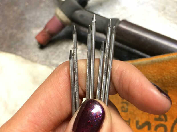 Para mi tazón de acero inoxidable, he utilizado 1/16 electrodos del tungsteno de lanthanated, afilados a un punto de la punta de lápiz, y. 035" acero inoxidable TIG varilla. Configurar el soldador posflujo DC negativo, seis segundos, 120 amperios para virar y 60-70 amperios para soldar.