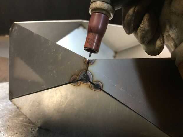 Encontré este paso a ser muy importante, cuando se sueldan los bordes--si previamente no había soldado con autógena la esquina, encontré que accidentalmente soplé los agujeros en el metal muy fácilmente. Es mucho más fácil hacer una soldadura limpia si cada extremo de la costura ya es soldado con autógena.