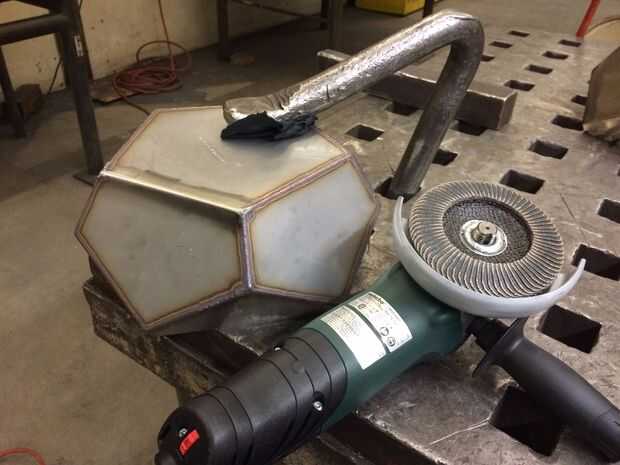 Una vez que había lijar todas las soldaduras, cambia a un disco Scotch-Brite y pasó suavemente sobre cada borde y cada cara para crear un acabado suave y satinado. ¡ Mira el vídeo Time-lapse que hice!
