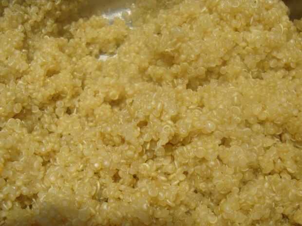 Es tan sencillo como hacer arroz quinoa. Nada de lujo aquí. Echar la quinua en una olla con una tapa y añadir dos volúmenes de caldo de verduras para cada volumen de la quinua. Llevar el agua a ebullición y baje el calor para dejar que hierva muy lentamente. Mantenga la tapa en unos 10 minutos. Si la quinoa no ha hinchado entonces y absorbe la humedad, retire la tapa y espere un poco más. Al final debe parecerse a la
