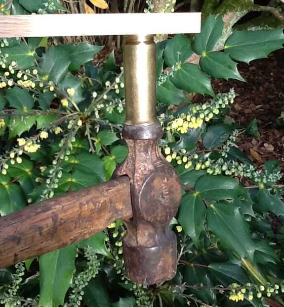 Usted ahora necesitará un martillo de pein de la bola en un vicio y la concha mirando hacia abajo. Con un trozo de madera para proteger el latón usar otro martillo golpear firmemente control a menudo para hacer Asegúrese de que la llamarada es incluso.