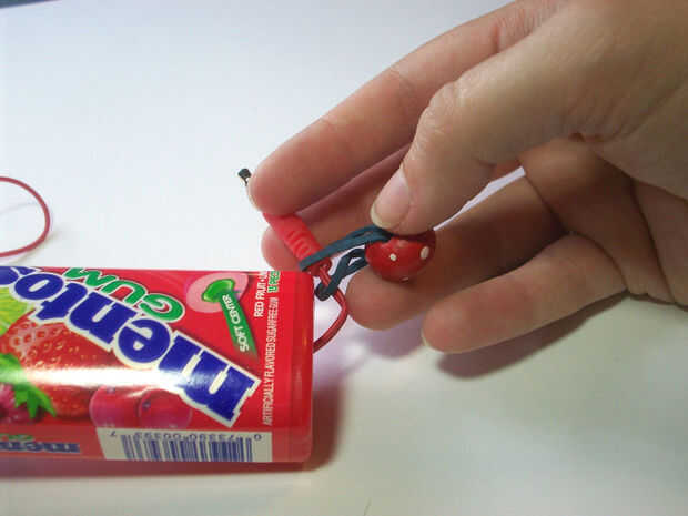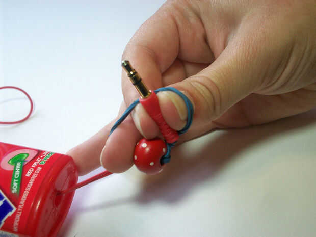 -Inserte una cinta de goma a través de cada grano (los granos son para fijar la broca auxiliar en la parte inferior del recipiente).