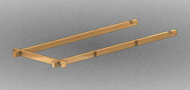 La representación de la estructura son de las piezas terminadas no hago algunos de mecanizado hasta más tarde, por lo que pude hacer las mediciones de las piezas acabadas. La articulación de reducir a la mitad de T hice después de hecho el delantal y los agujeros ha perforado con las patas que sujetan en su lugar por lo que los podía perforar en una operación de mecanizado que se donde exactamente en su lugar. En el procesamiento ya están allí.