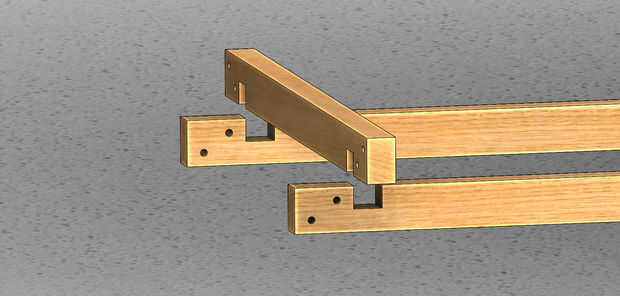 Pegadas a la viga y la viga transversal y asegurado con un tornillo a través de la viga.