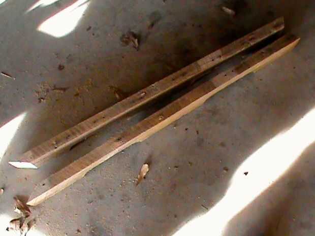 • dos 2x4s - 43" de largo, con un ángulo de 60 grados corte en un extremo y un corte de ángulo de 30 grados en el otro (cuadro 1) (Nota. Cuando digo "2 x 4" me refiero a qué tipo de junta es. No las dimensiones.)