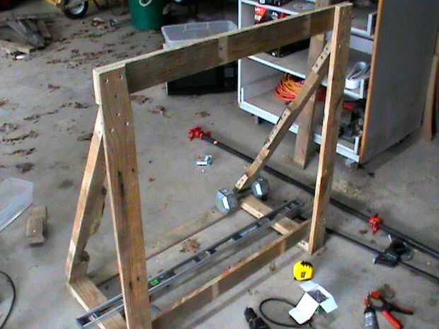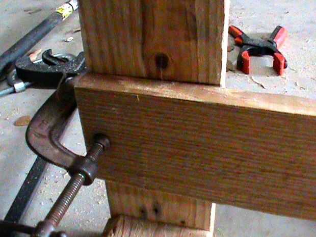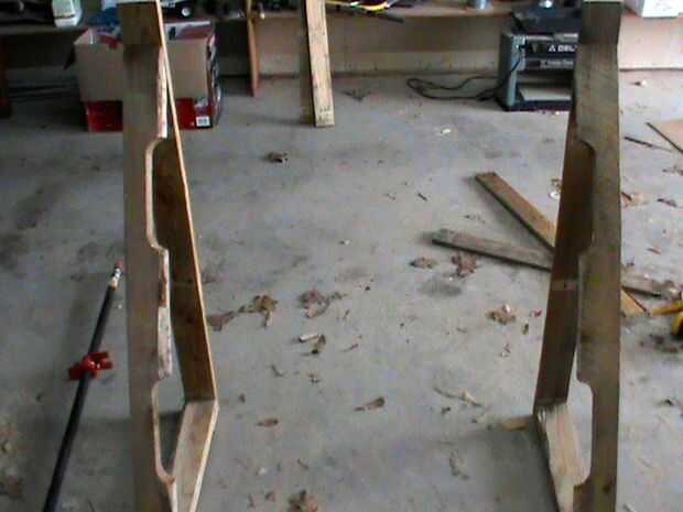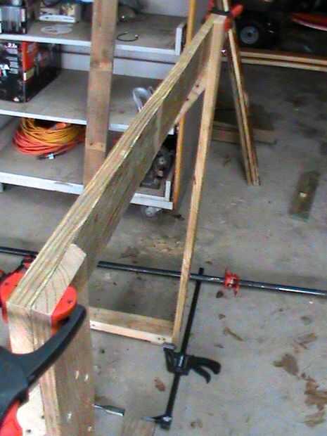 Cuadros 8 y 9 - los soportes de pie y un tablero de 40 1/2" a la parte superior de la abrazadera. Asegúrese de que la base tiene el mismo ancho de la parte superior antes de atornillar el tablero en.