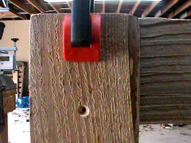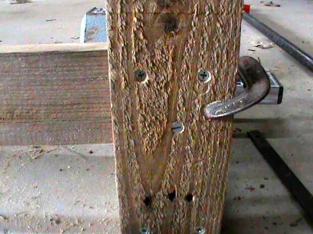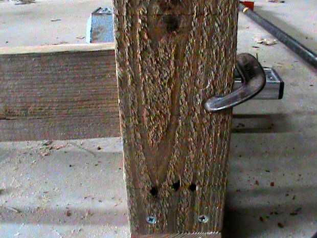 Fotos 15 y 16 - taladro 3 agujeros y tornillo de tres tornillos de 1 1/4". Repita para el otro lado.