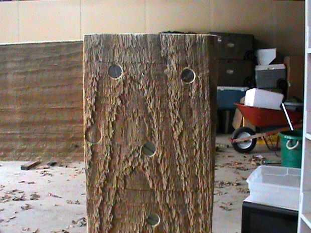 Fotos 2-7 - comienzan desde la parte superior de cualquiera de los soportes y hacer 4 líneas en incrementos de 9" va hacia abajo. Lo mismo para el otro.