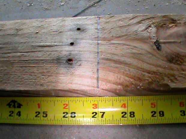 Fotos 13 y 14 - ahora, ir hasta el fondo y sujete una 40 1/2" tabla de allí. Asegúrese de alinearse con las líneas.