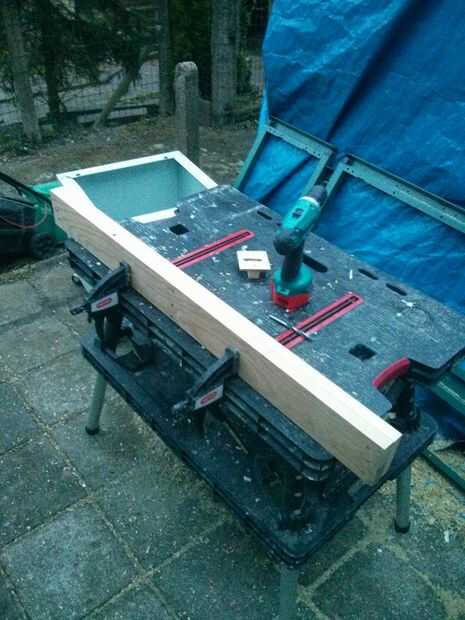 Ya que quería que los consejos que tan ordenado y tan bien hecho como posible y quería usar tacos para reforzar la losa final, necesitaba una plantilla mejor. La anterior uno no funcionaba hacia fuera así como esperábamos, así que hice unas nuevas. Tal vez voy a hacer un mini instructables en esas plantillas más adelante. La plantilla original se basó en un video de youtube que encontré aquí. He hecho mi versión con un poco de pendiente por lo que pude voltearlo todo e hice el cuerpo demasiado grueso, que significaba que no podía perforar correctamente a través de la plantilla.