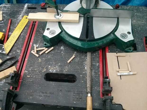 Para este proyecto, gasté dinero en herramientas (pinzas) y el otro dinero que invierto en las varillas de que cortar tacos. Era mucho más barato para comprar unas barras y cortar en longitudes de 4 cm. Entonces tomó un archivo y la parte superior de cada espiga hacia abajo un poco para hacerlo más fácil para que encajen en los agujeros de la tierra... Todo este proceso, desde la creación de las plantillas de presentación de las plantillas individuales tomó bastante tiempo.