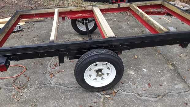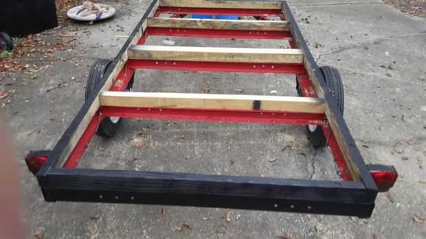 Nota: Las partes exteriores del remolque son ligeramente superiores a los internos las vigas cruzadas. Si se le trata, puede colocar láminas de madera en la parte superior para equilibrar la altura.