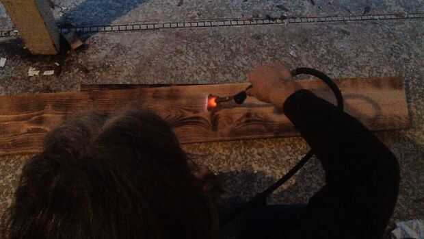 Luego he utilizado técnicas de prohibición de sugi de Shou para quemar la madera para darle color y para proteger la madera contra insectos. Cuadro 6 muestra este método. Usted puede comprar un soplete de propano por unos 30 dólares, propano latas aproximadamente 4 dólares. Quemar la madera en su color/oscuridad deseado. Es realmente fácil, no tenga miedo de poner la madera ardiendo. Puedes ver estas piezas en la parte inferior de la caja, eran más gruesas por lo que usé como el acento de la parte inferior.